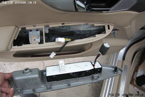 4.拆主驾位的车窗控制总成了,小圆盖用一字螺丝刀撬开,里面有个十字螺丝拆了后往上一提就可以拿下总成了