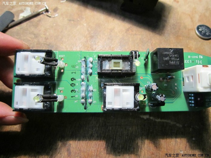 升窗器安装完成,顺便把按键灯装了一下,由于时间有限就随手拍了几张图,LED选的是3MM的草绿色和原车的小灯颜色比较接近点个人喜好看的挺像原配的!