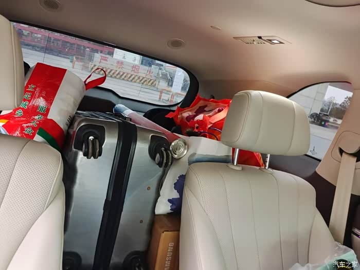 可能是我出差太过于兴奋了所以装的行李比较多,除了工作所需的笔记本电脑,给客户送的礼品之外,大行李箱,钓鱼的装备等等全部都带着,后备箱装满后第二排座椅还可以继续装,说实话这也就是开我的蓝山能装的下,换作别的车指定拉胯了呢!