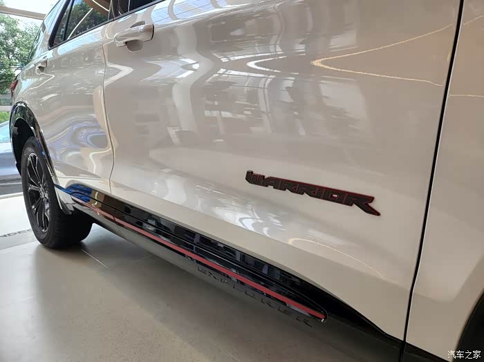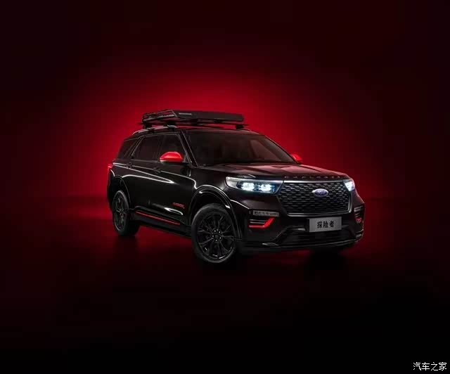 车头前面的英文探险者也变成了红黑色,细节做得不错,雾灯下面加了红色装饰,点缀很到位