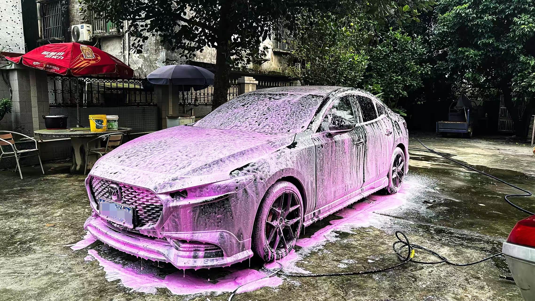 喷 “Mega Foam” 雪崩泡沫,覆盖全车后等 3-5 分钟