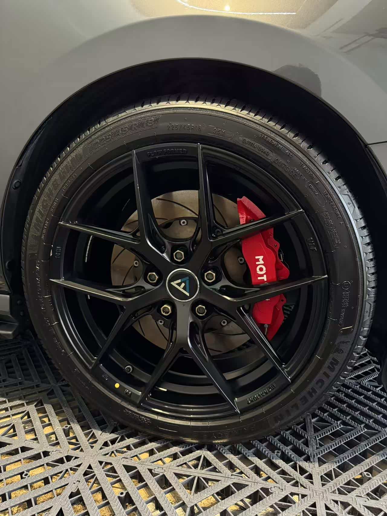 选品思路:轮毂换轻量化锻造款(比原厂轻30%,过弯更跟脚),颜色选黑色;卡钳挑红色锻造款(活塞数更多,刹车更稳还吸睛)。