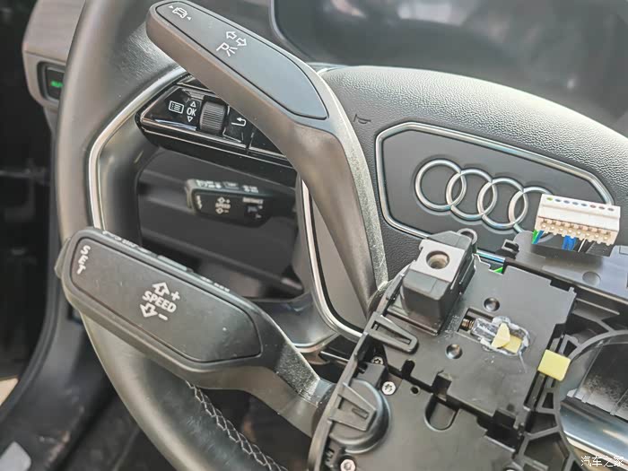 后面用车的时候越发觉得在城区和高速上开车没有ACC特别麻烦,长时间踩着刹车油门会让长途驾驶变得很累。于是专门找了一家奥迪改装店去咨询,了解到我的车出厂时其实已经在车头位置预留了前部摄像头和感应雷达,现在加装ACC只需要换一个原厂拨杆,再激活一下系统即可,方便快捷且价格也不贵,谈下来只要4000元。于是就委托改装门店订购了原厂ACC拨杆,待到货后就去安装激活ACC自适应巡航系统。