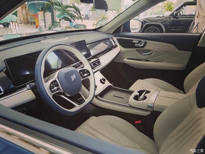 进入车内,首先映入眼帘的是中控台上那块大尺寸的触摸屏,显示效果清晰,操作流畅。座椅采用了高级皮质材料,触感柔软舒适,长时间驾驶也不会感到疲劳。方向盘的握感很好,多功能按键布局合理,操作起来非常方便。此外,车内还配备了全景天窗、自动空调等配置,提升了乘坐的舒适性和便利性。