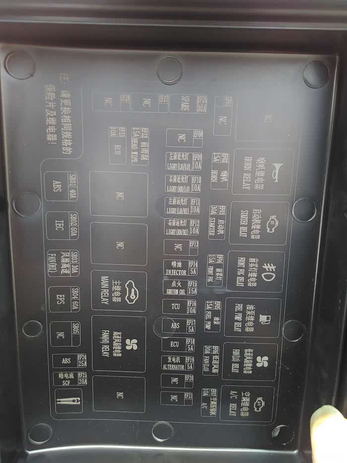 驾驶室的保险盒没找到,引擎盖里面也没找到