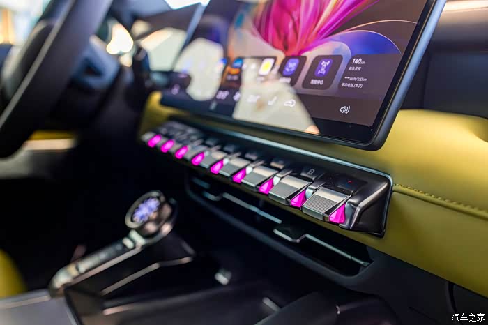 12条高品质LED灯带环绕,256色无极变换;金属质感按键发光颜色跟随氛围灯变化,双重灯光组合让座舱氛围更具层次感,也方便在夜间快速精准地找到按键;支持呼吸律动、音乐律动、AEB、DOW开门预警等功能。