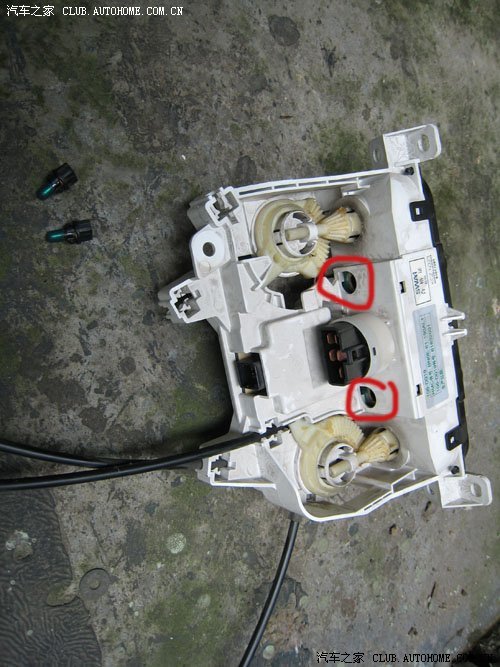 雾灯开关的指示灯也坏了,如法炮制,不过这开关里的指示灯可不是T5的,是两支只有绿豆大的,DIY需要合适的LED才行哈。。。。。。。。