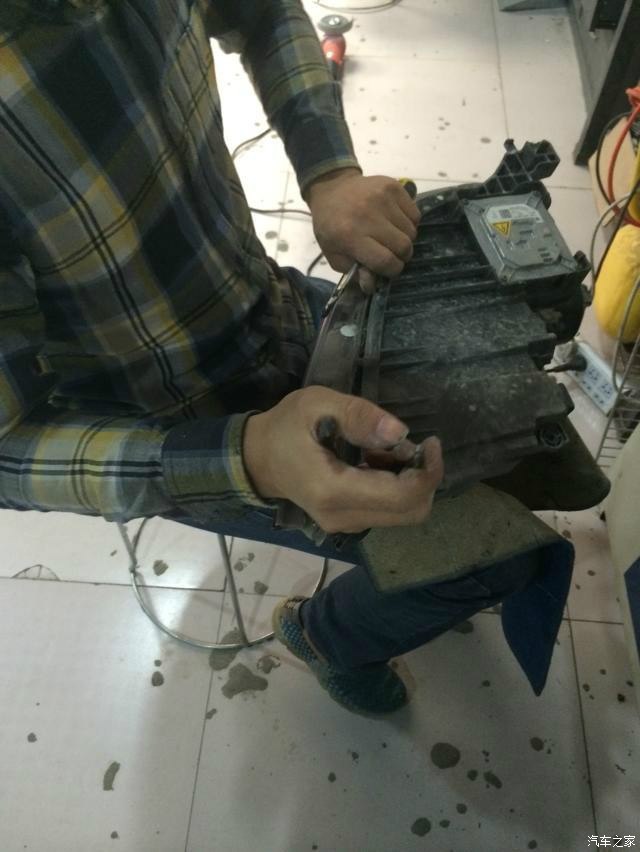 4、因为海拉5透镜和我原车透镜孔位对不上,所以要打磨,特别小心翼翼,万一多了,要么灯高度就不行了,要么就不美观了。再次,还是赞下小杨特别用心,也特别细心,跟女孩子一样