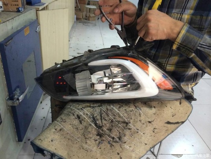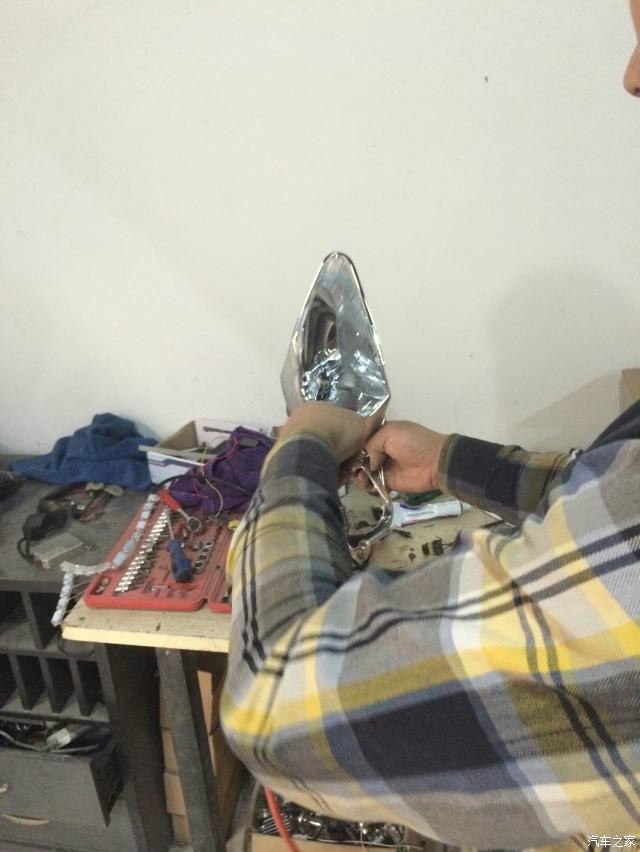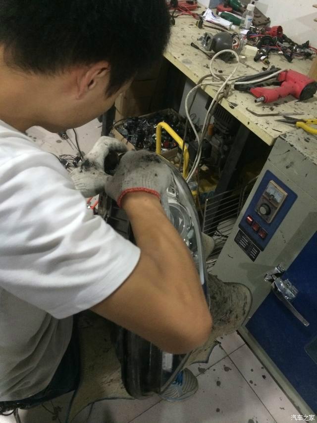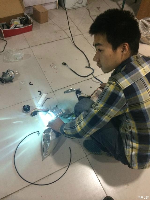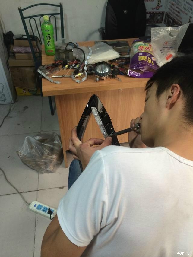 5、另一边的哥们正给我弄牛B的日间行车灯,这也是细心活,看的我都急了