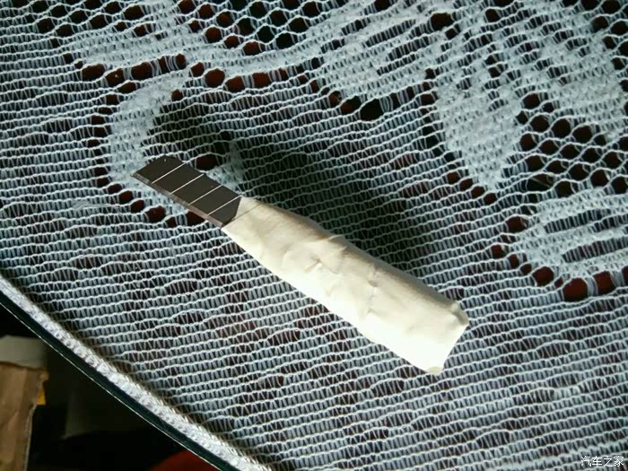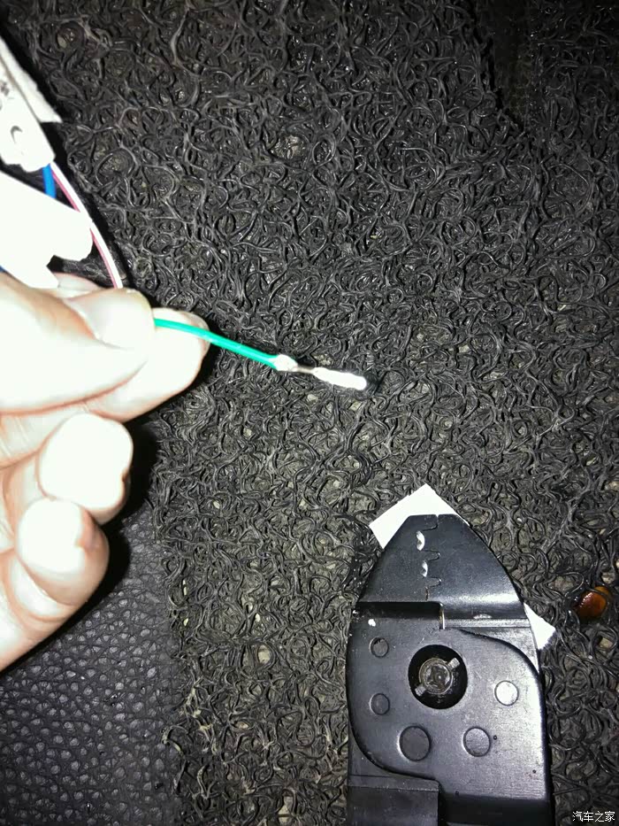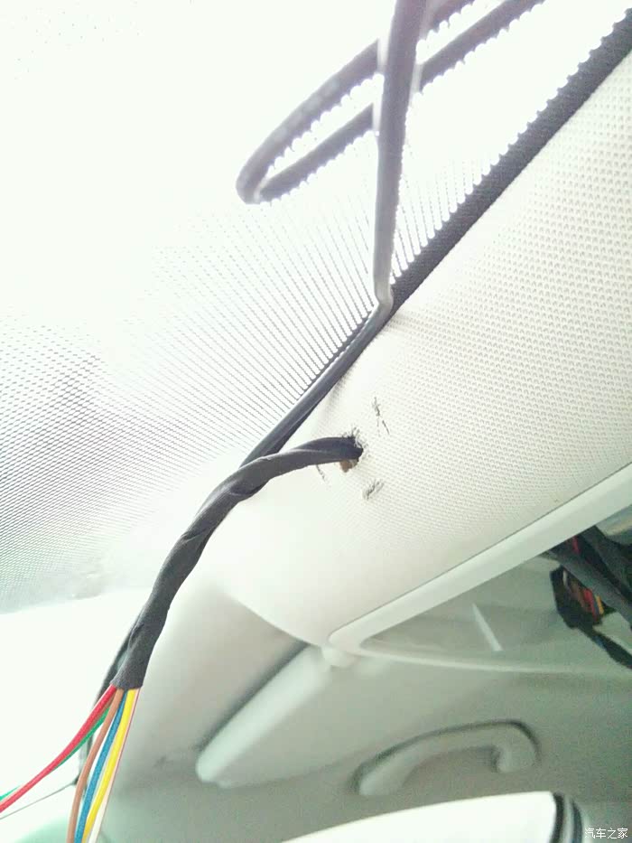 用小刀在顶棚中间处打洞穿过线束