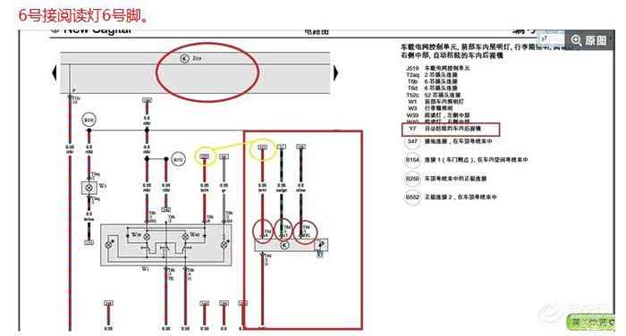拆下顶灯,阅读灯六号针脚原来是空的,所以直接插进去就可以了