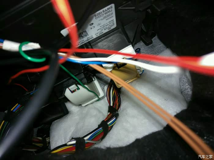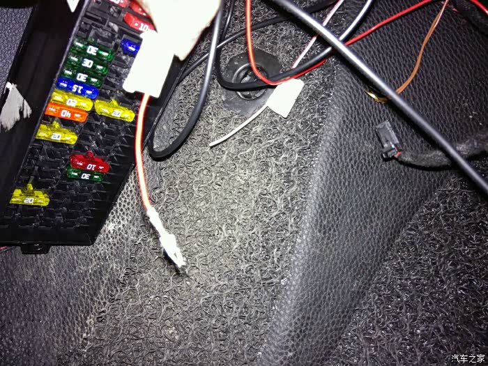 拆下仪表台正下方盖板,线束从顶棚→A柱→保险丝盒