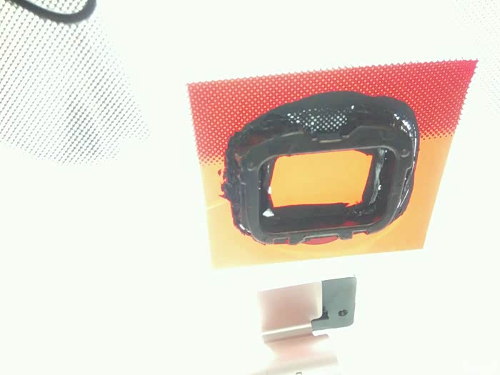 先涂上汉高的玻璃底涂,15分钟后在涂汉高的玻璃胶,并且放上雨感底座,等胶水固定24小时后再进行下一步工序