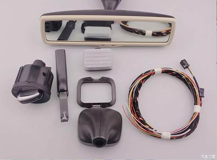 首先要准备这么些个东西,自动防炫目后视镜总成,自动大灯开关,线管,雨量传感器,雨感支架,线束
