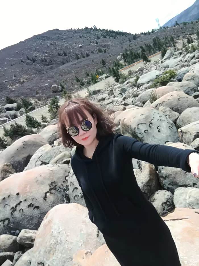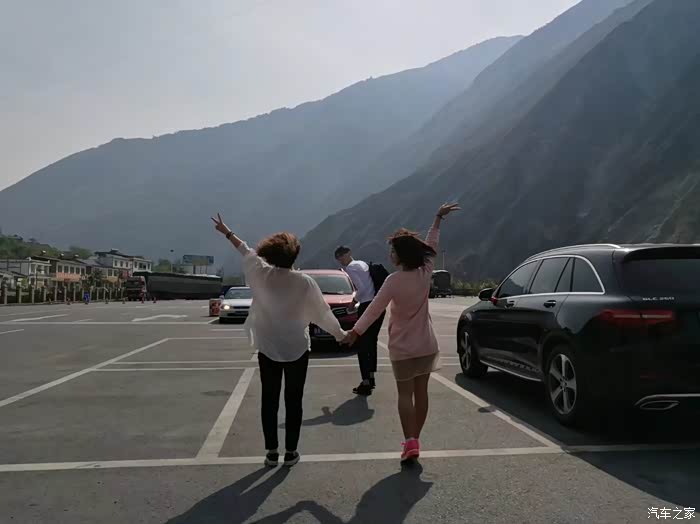 一路沿峡谷西进,到达绵虒服务区休整,这里就是个风口,两女士吹成狮子头了!