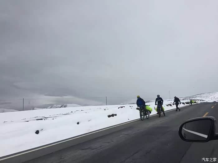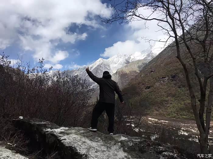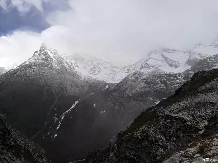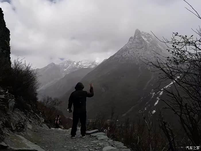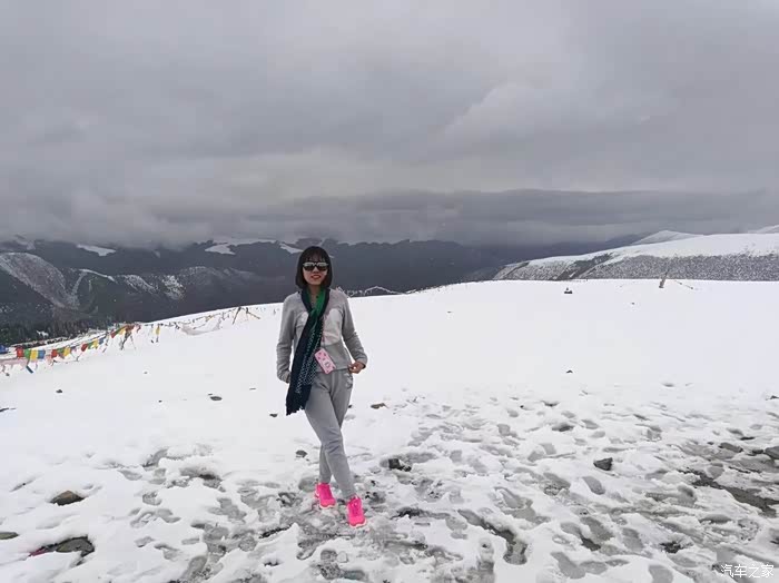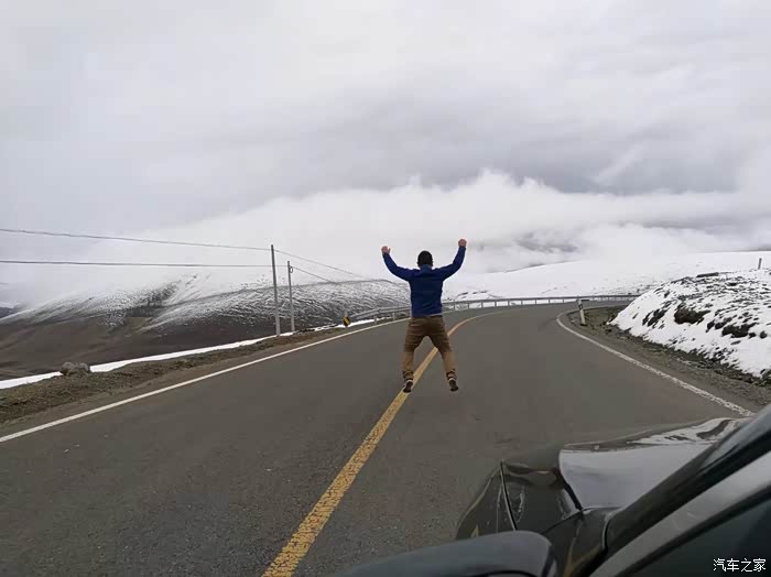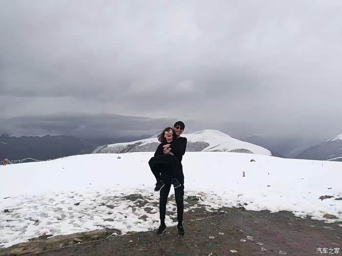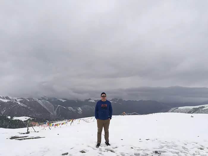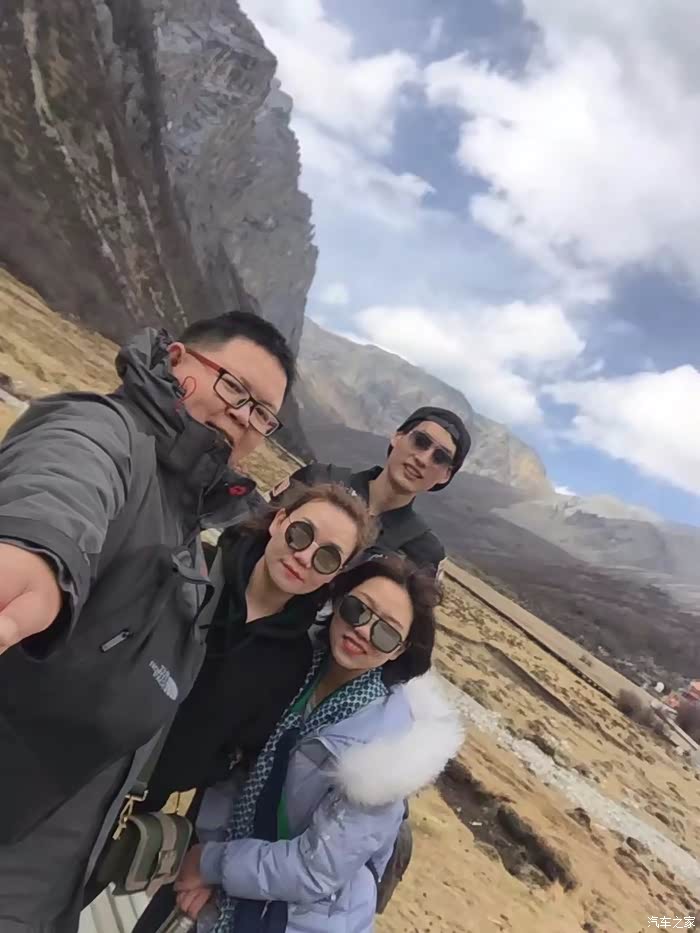 一路攀爬,经历土路碎石路泥巴路冰雪路,走一段歇一段吸点氧,终于到了这个垭口,旁边就是悬崖没有栏杆,风大的会把我们吹成疯子,我媳妇儿说她穿的长款羽绒服就像个帆,感觉都要飞起来了!海拔高天气多变,登山登山尽量把装备带齐全,防风防晒防滑防冻都要带,我们几个就我穿的冲锋衣,但是没带手套手最后冻的像猪蹄!