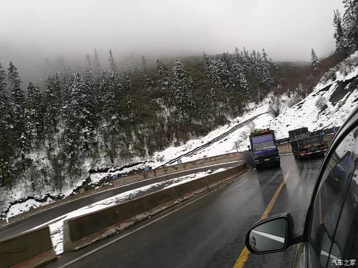 到了这里才知道原来这里也是堵着在,一会听说左边放行了,大伙都开车往左边走,一会儿又说右边折多山放行了大伙儿又调头往右边走,在这里原地转了两圈,等了二十多分钟还是折多山那边放行了我们又往折多山主318线上走!