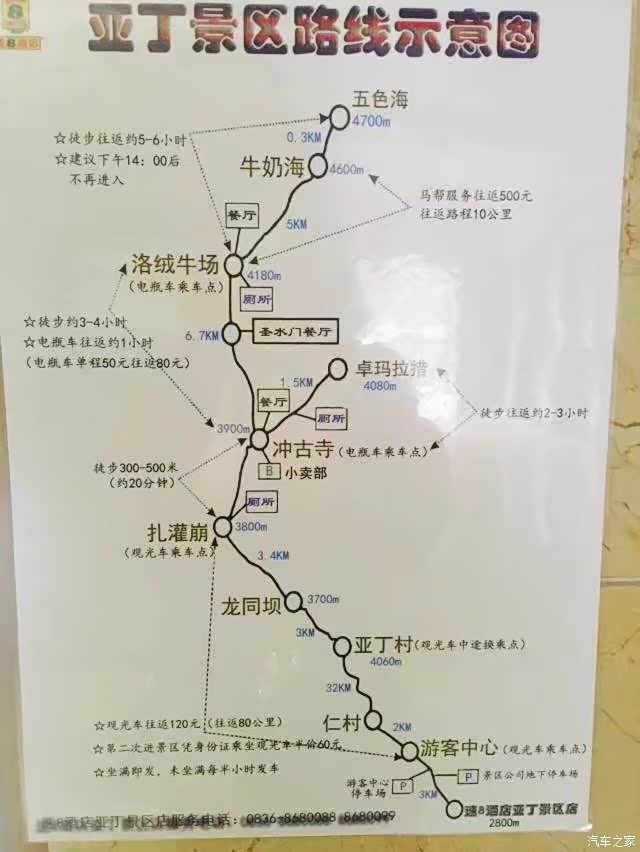 亚丁景区路线示意图,玩完回来我想说那个500块钱的马帮服务包送上山下山真的很值,可惜只能85KG以下的骑,像我这样体重超标的你就拿着氧气瓶慢慢爬吧!
