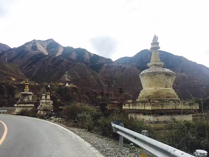 马尔康到色达这段海拔高了气温低了,可以加上厚衣服裤子了。路况其实蛮好,无奈我们为了躲避卡车被放在路上的大石头划破轮胎,很揪心啊!到了这里开始很多地方没有信号,尽量联通电信移动三个运营商的手机都带一个,我们坏车的地方没有信号,稍微往前走了一段找到信号好的地方坐在车里打电话想办法,我媳妇儿用大众点评查到了附近的所有汽修厂的电话,我们就挨个打了,所以说大众点评在这里面也是个实用的软件。打电话的过程中所有的汽修店都问我们是什么车,前几个说奔驰明显报价被宰,后来我就说的大众途观,然后尽量让女士跟他们还价,硬生生的从1800还到1700,最后再磨了50块,1650换了个新的倍耐力的235防爆胎。师傅们过来下轮子带回去再送过来换上有80公里路了,紧急救援人家没有宰我们,我们当然也给了他们两包黄鹤楼作为感谢,人与人之间都是互相的嘛!这边现金不用带很多,换轮子吃饭买东西基本都用微信支付宝,很方便!到了色达吃晚饭就一盘素材蘑菇没问价格,结账98元,比牛肉都贵,说是山上采的,吃起来完全不是山上的那个感觉,明显被宰了,所以在这边吃饭点菜没得价格记得问下价格再点!第一次来色达建议就在色达县城住吧,这里海拔稍微低点,我晚上去了五明佛学院回来有明显高反,头疼的吃了1颗布洛芬才勉强睡着。这边睡觉都有电热毯,但是千万别开一夜,不然第二天上火鼻子里都是血。第一次上高原不要洗头洗澡,说话小声别吵架,遇事别激动慢行,建议带点缓解头痛的布洛芬比当地的卖的头痛粉要好,还可以备瓶氧气。最后不知道是从平原上了高原的气压原因还是因为坐车里时间久了,一车人都肚子胀气难受打嗝放屁,所以晚上我又去色达县药店买了点藿香正气水跟顺气丸,吃了药第二天就好了