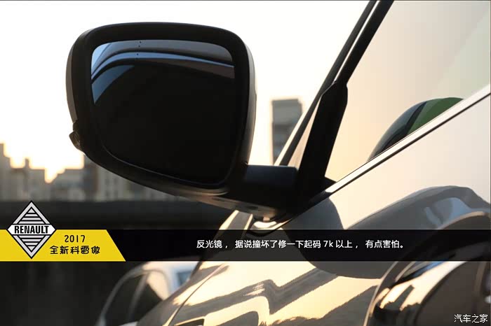 。雷诺两个字勾起了我的回忆,上学的时候还经常看F1,当初的雷诺车队叱咤风云,当红车王阿隆索,也是带领雷诺车队拿到车队总冠军和个人总冠军。科雷傲,在我的眼前一亮。去了4S店,二话不说去试驾了科雷傲。一上车,第一感觉空间真心大,第二感觉说不上来,一种家的感觉。试驾了科雷傲,发现比4008少了酷炫的科技,多一份稳重的感觉。还有4008的扭力梁后悬挂的的确确不如科雷傲的独立悬挂。果断在3月入手科雷傲,近半年的选车,终于遇见你——科雷傲