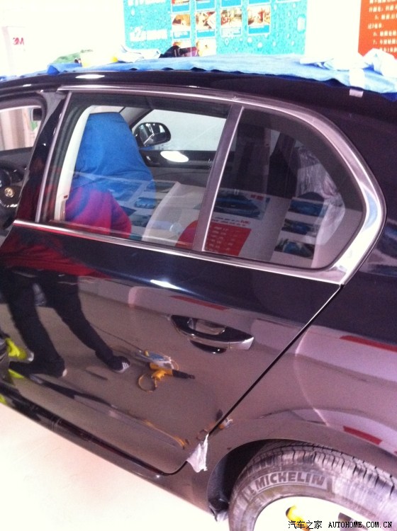 开始贴膜了。这家店的师傅很专业的。全国冠军。(3M比赛)他们从一个小店一直办成一家小公司。手里不少银子了。已经