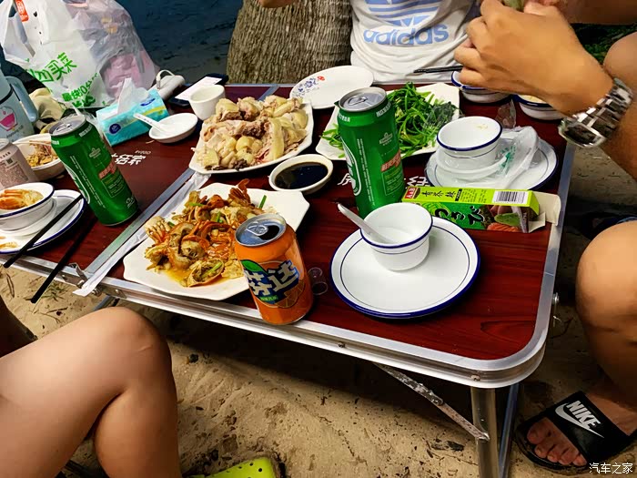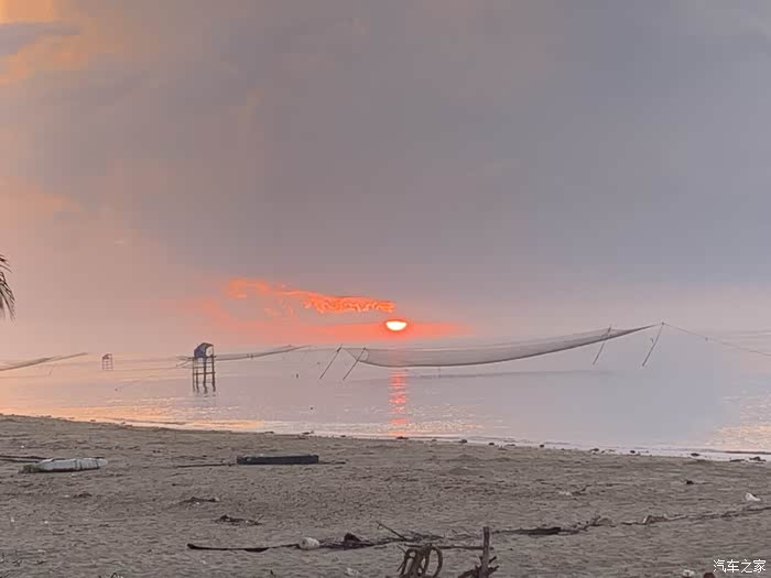 DAY3:清晨全家闹钟定时起床看日出,一起迎接第一缕阳光,天气给力,太阳如期而至,在海平线上慢慢升起,打开车门就是大海,这种感觉无与伦比。在车里吃完早餐后我们出发潭门渔港,车速不快基本不超过70KM样子,沿途一路欣赏着各种风光,椰子树遍地都是,这就是旅行的意义吧。中午时分我们到了潭门渔港,在渔港最具人气的一家海鲜店--老渔港海鲜店就餐,老板非常客气,海鲜特别新鲜,是我们本次旅行吃的最爽的一顿海鲜,价格也很公道,四个人252元就吃撑了,鱼虾蟹样样都点了,最后结账还送了水果,临走前又送了2个儿子一人一个小海螺,这样的店铺肯定是生意兴隆的。在渔港随便逛了一圈后,上车前往博鳌,没去亚洲论坛,我们家对这种参观类的旅游都没兴趣,在长滩雨林把车开进了海边,下车逛逛,一片无人的海滩,很舒服,正好休息休息看看海景。午休结束沿着海边一路驱车来到网红公路--旅游公路,这是一条海边的县道,这条公路之所以出名,就是因为沿途都是美景,很多自驾达人都喜欢来这里打卡拍照,一路开到石梅湾房车营地,其实就是景点门口一个水果店老板的私人大院,里面提供水电,B型车80一夜,C型车100一夜,营地当天晚上只有我们一辆车入住,我们又是包场了,傍晚我们来到海边,踏水游玩,这里附近很多临海的高档酒店,所以晚上海滩上也不少,夕阳的余晖洒在海面上,这美景是没话说了。
