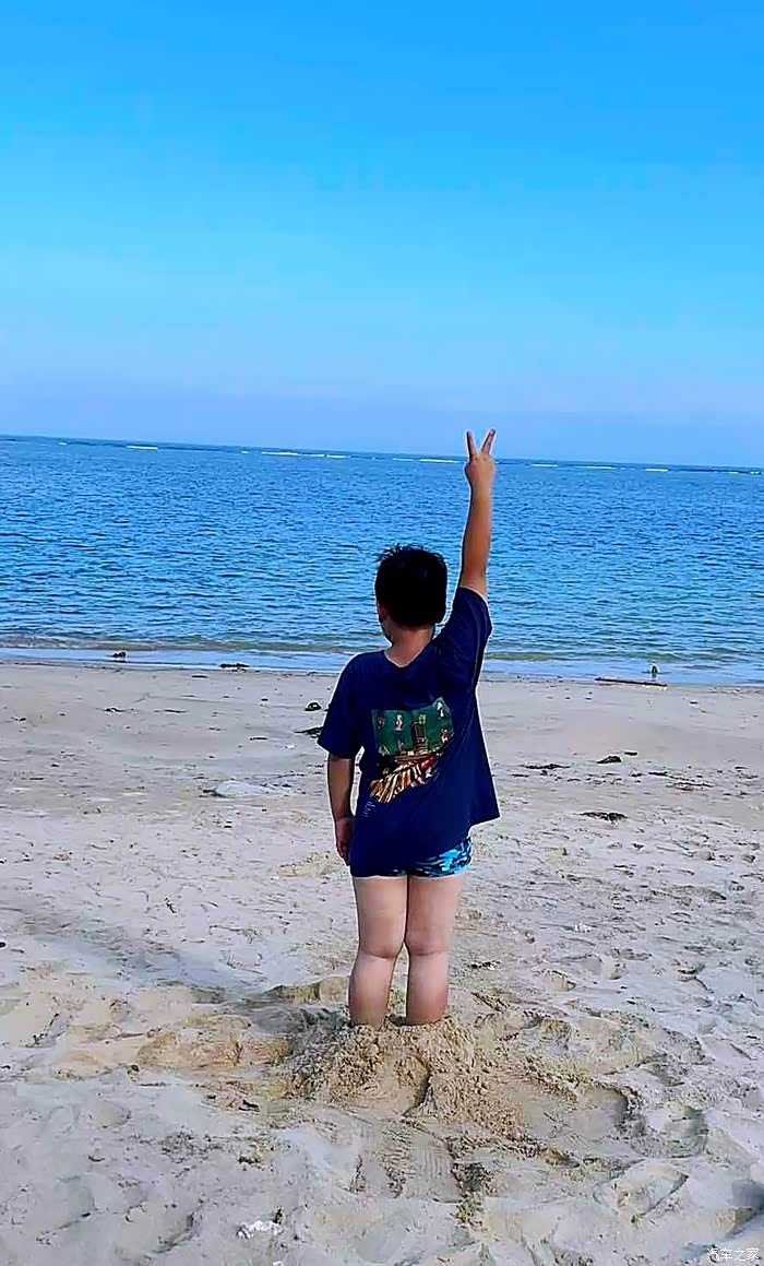 石梅湾海滩,我和老二的父子背影,老大拍的。