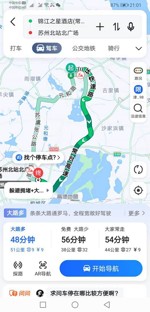 在常熟停留了4天,已经预定了苏州的住宿,据介绍,常熟到苏州的交通极为便利,只有约60公里,驾车大约一个小时就到。另外苏州市区难觅停车位,自驾到市里并不便利,且苏州住宿费用数倍于常熟;于是决定以常熟为据点,自驾到苏州火车站,比较容易停车,然后打车先到拙政园。