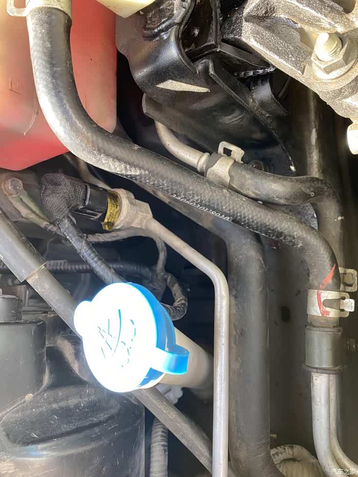 玻璃水旁边这个插头是什么,温度传感器吗 ??? 我的车怠速就高温,跑起来省道温度低,稍微慢点就高温,头大,