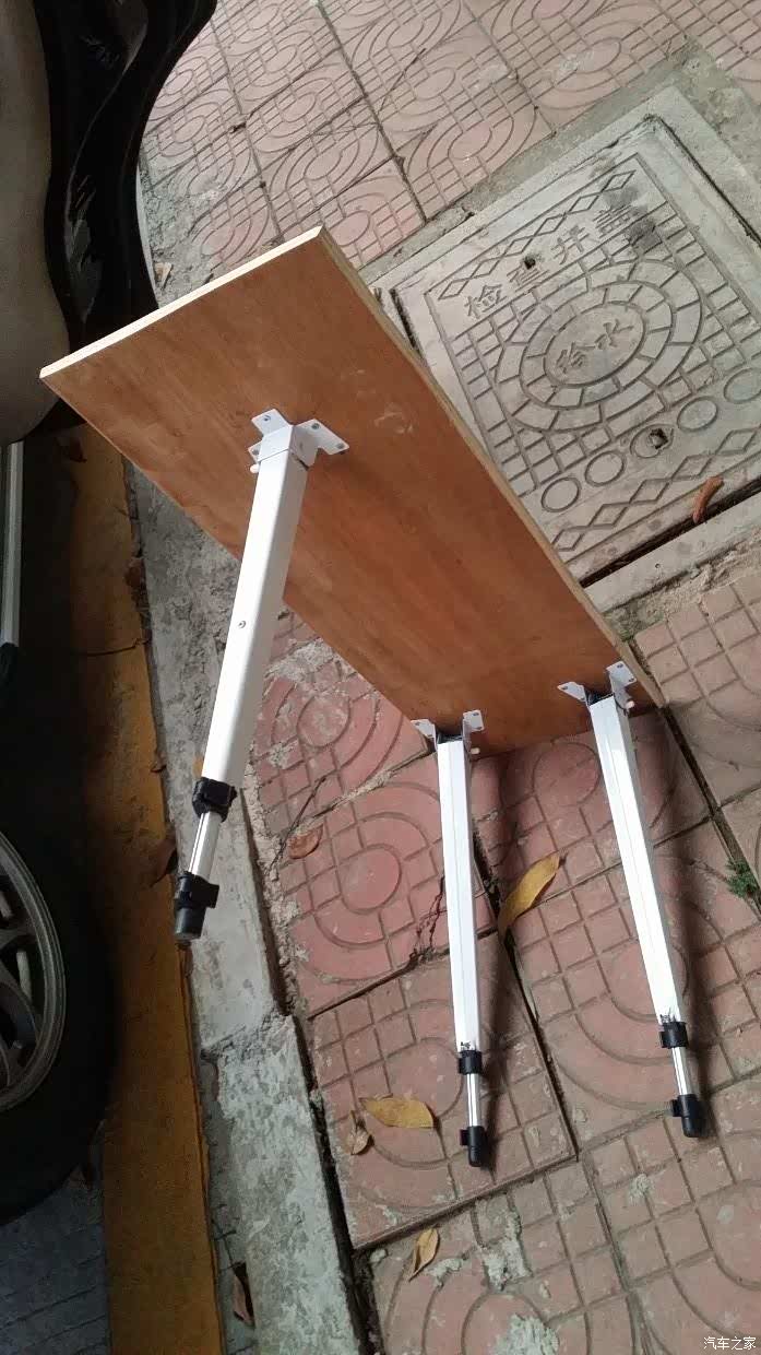 简易的小桌子。这个高度是在车里当床板用的高度,一般不轻易再调整。