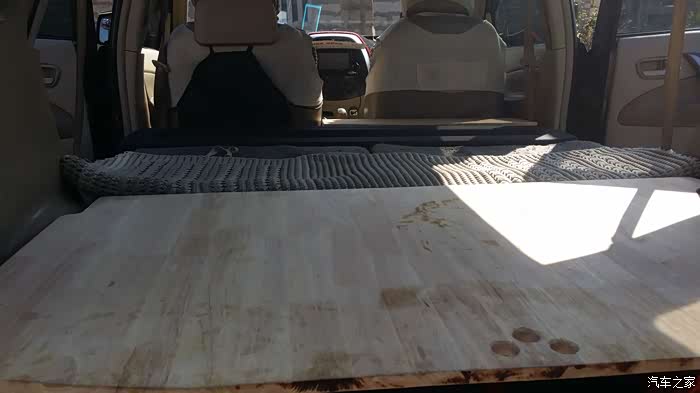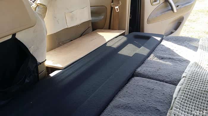 上图中,副驾的后面已经放了一块根据空间定制的木板。宽度就是从主驾的边边一直到B柱这边的墙。