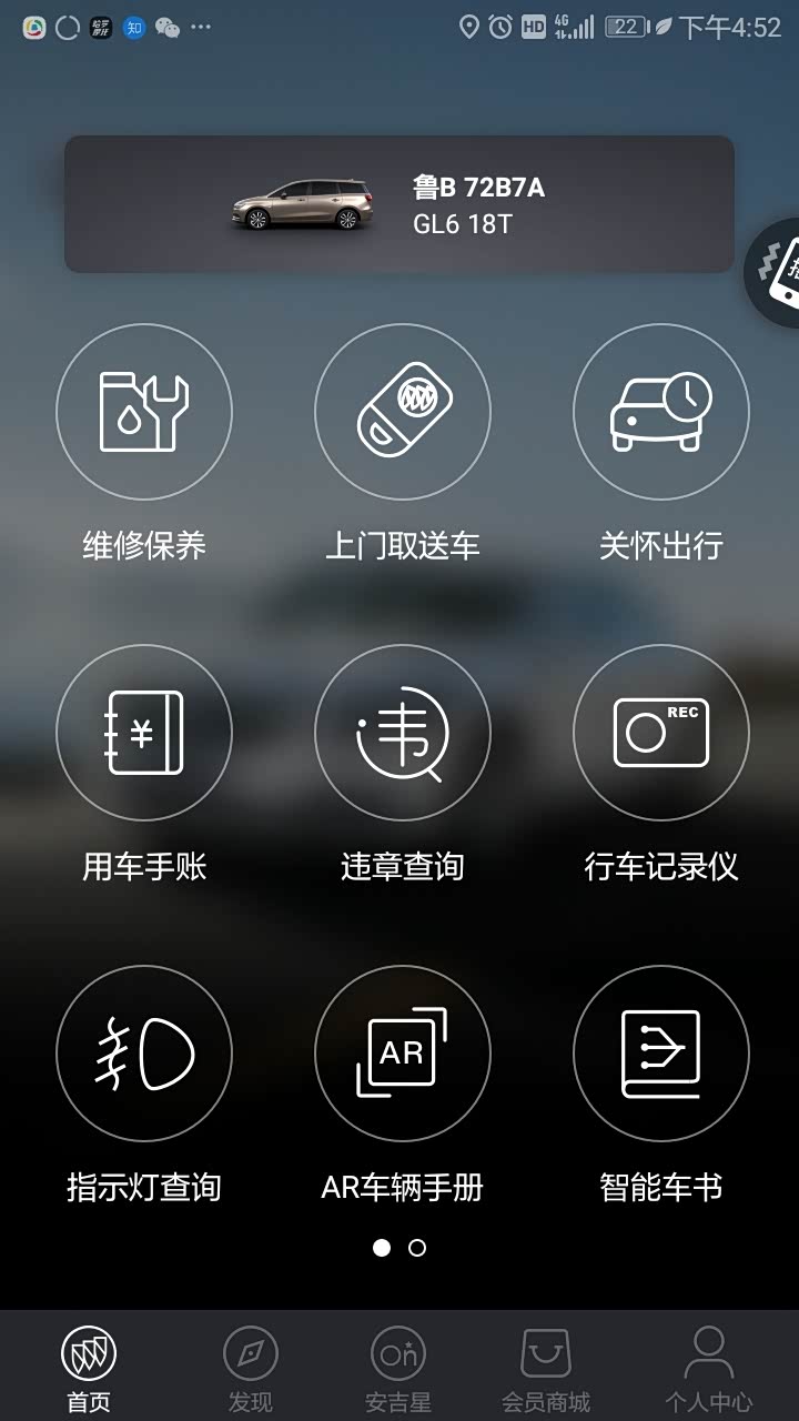 打开别克官方APP,主页下面找到行车记录仪
