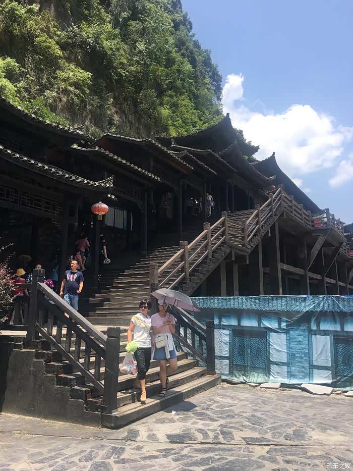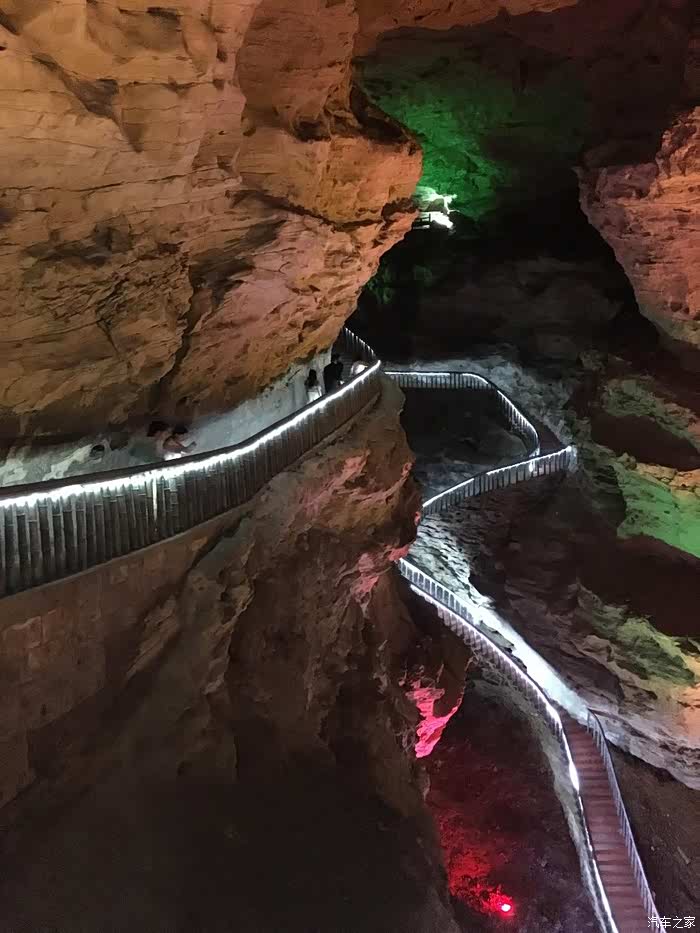 day2(2019年7月7日): 8:00离开酒店步行不到十分钟到腾龙洞游客中心换票。赶第一趟班车到达洞口,开始了今天的游览。腾龙洞风景区,位于利川市郊约8公里处。腾龙洞是一个面积巨大的溶洞,洞内全长约五十多公里,目前被开放、可以供游客游玩的约6公里。亿年的地壳变化,使得腾龙洞景区内形成了“观彩峡”、“白玉石林”、“三龙门”等洞中景点,风景区的开放地段分为前洞与后洞两个部分,前洞的规模较大,里面有山峰、有大厅,可以说是洞中有山,山中有洞。此外,风景区内独特的梦幻激光秀和大型土家族歌舞剧的表演,也位于前洞部分。由于进来较早,游览了后洞还按时观看了两场表演,表演的费用包含在门票内。洞内凉爽舒适。一点半返回游客中心。直奔恩施市用午餐。结果到恩施发现原本计划的恩施土施城下午五点停止入内,取消吃正餐的想法,垫吧一口赶往土施城,天气闷热,赶往九进阁看演出,无非就是土家名歌之类,看过腾龙洞的表演,感觉这个也就鸡肋了,恩施城打卡匆忙。结束之后赶往土家女儿城用餐玩乐,女儿城四面环山,吊脚楼建筑随处可见,特色小吃有红糖糍粑、煎豆皮、羊肉豆皮等等。晚上赶回恩施市入住网订酒店。今天行程稍赶!但逛吃体验完美。