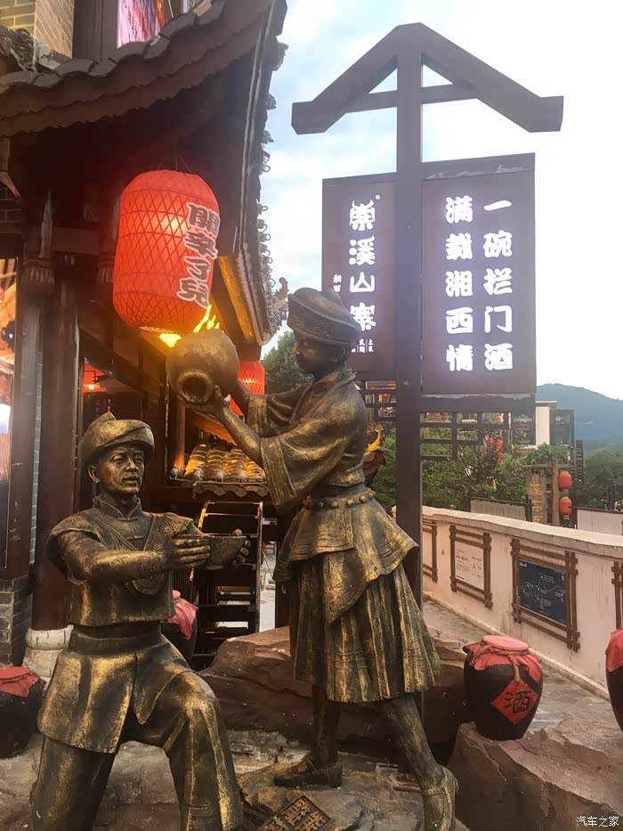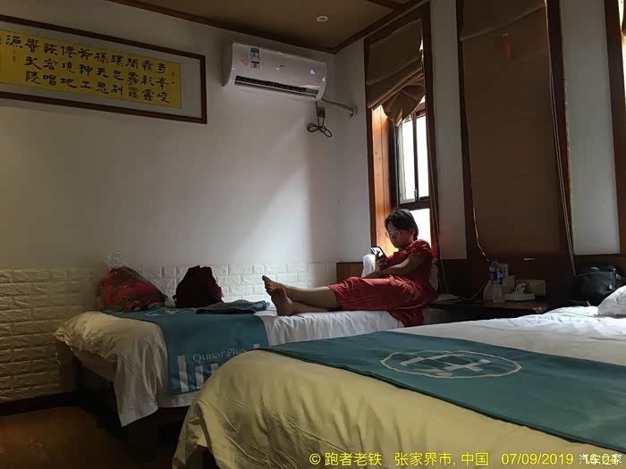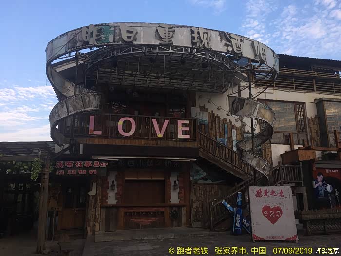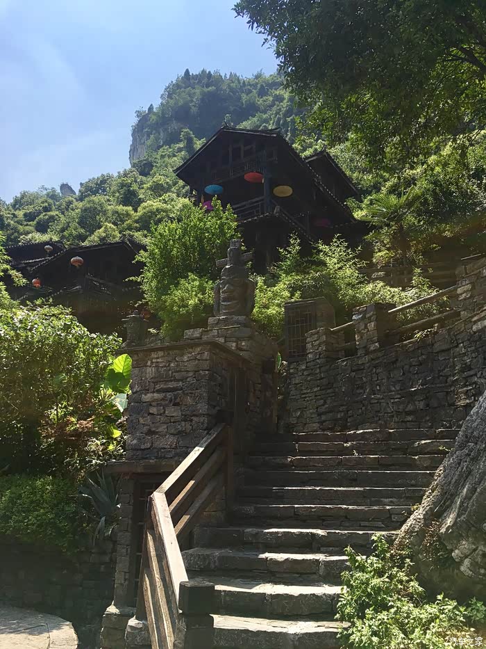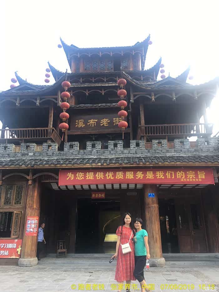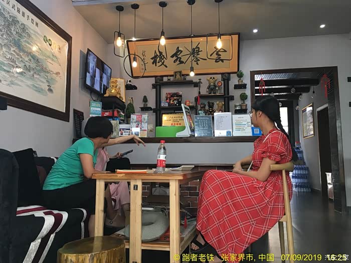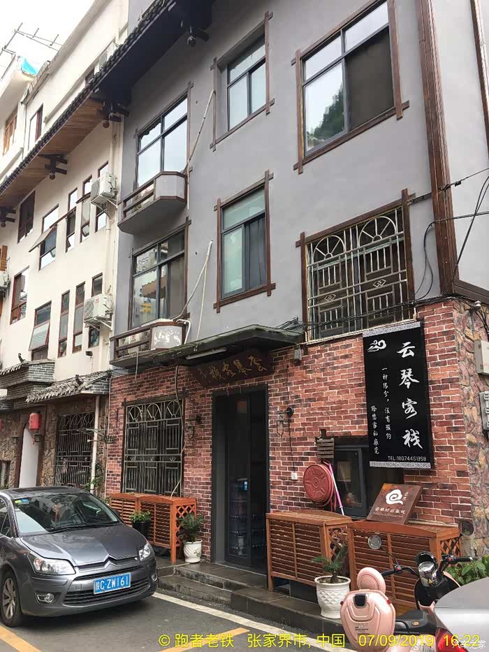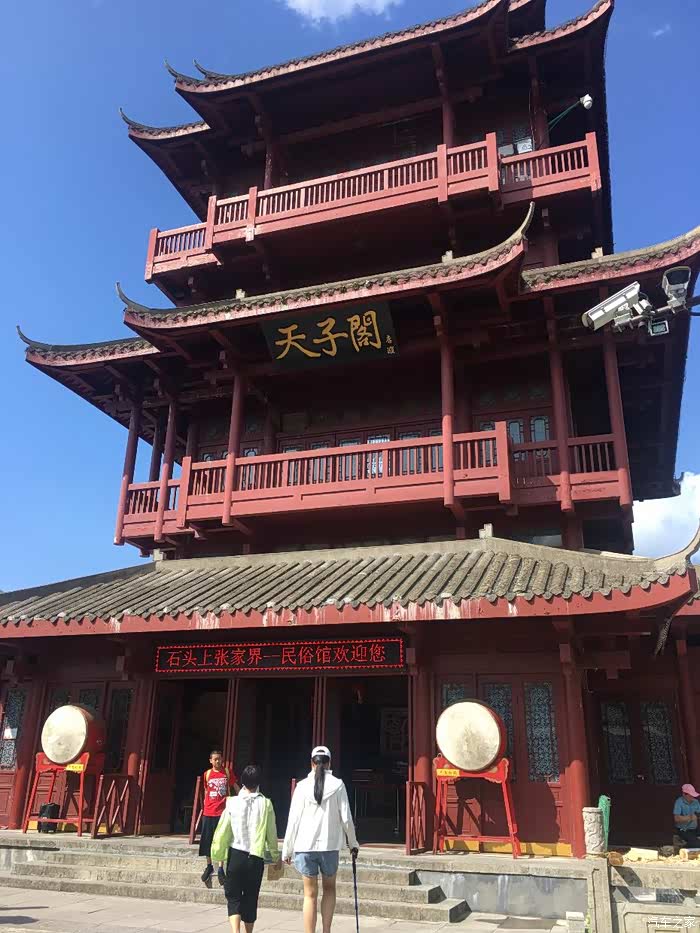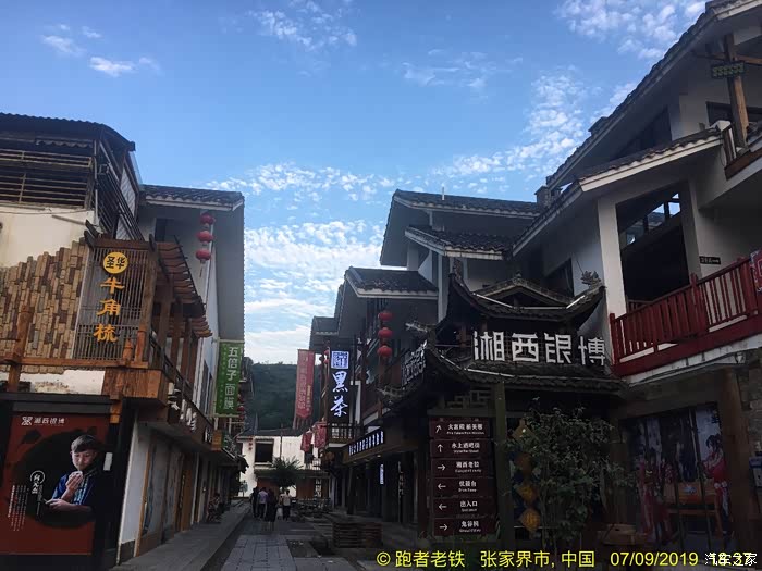 D4(2019年7月9日): 早上晚起,起床觅食,再吃当地名吃豌杂豆皮,豆皮筋道,杂酱很香,味道不错。由于今天打算休整,去了恩施州文化中心博物馆,感受恩施土家文化。11:30打的回宾馆,开车奔赴下一个目的地张家界,网上定好了森林公园武陵源标志门附近的客栈,直接导航过去。16:00到达云琴客栈(很有文化特色的民宿,赞),又一个午餐在路上的日子。入住后稍作休整,下去吃饭。自认为这些年走南奔北积累了不少防骗技巧,孰料套路太深,被客栈小妹推荐一家““”崇禧山寨”用餐,吃了一锅成本价两元的豆腐,付出了39元的血汗钱,一盘酱油炒鸡腿菇生生被美其名曰"山菇?? ?"卖到了49元, 一盘小米椒炒五花肉叫尖椒农家肉,59元,本来打算要一个汤一看价位伤不起,要不是饥不择食真就撤了,性价比超低的景区消费,装修很民族化,气氛很民族化,服务很垃圾,价格很贵族化,怪只怪平时挣得太少。重点在于菜都用不同造型的盆、锅、钵在盛(不难洗吗?),哎,一锤子买卖! 这就是沿途随处可见的"旅游扶贫"的内涵吗? 骗了肚子,步行至溪布老街,除了门口的招牌吊脚楼很气派之外,里面卫生一般,好多店面待招租,乱七八糟,感觉一般。好多旅行社带游客过来参观银货店鼓动购物或看表演,全国的老街大同小异!回客栈的路上发现武陵源区政府周围好多亲民的饭店商店,买零食后回客栈攒足精神第二日登山。