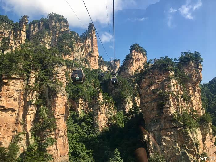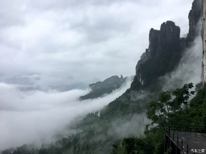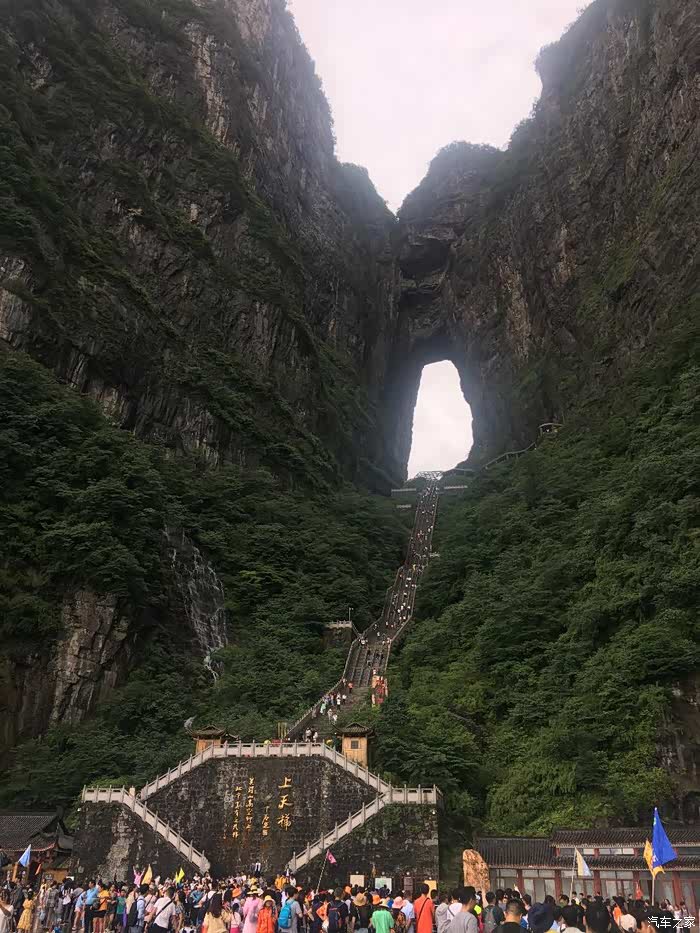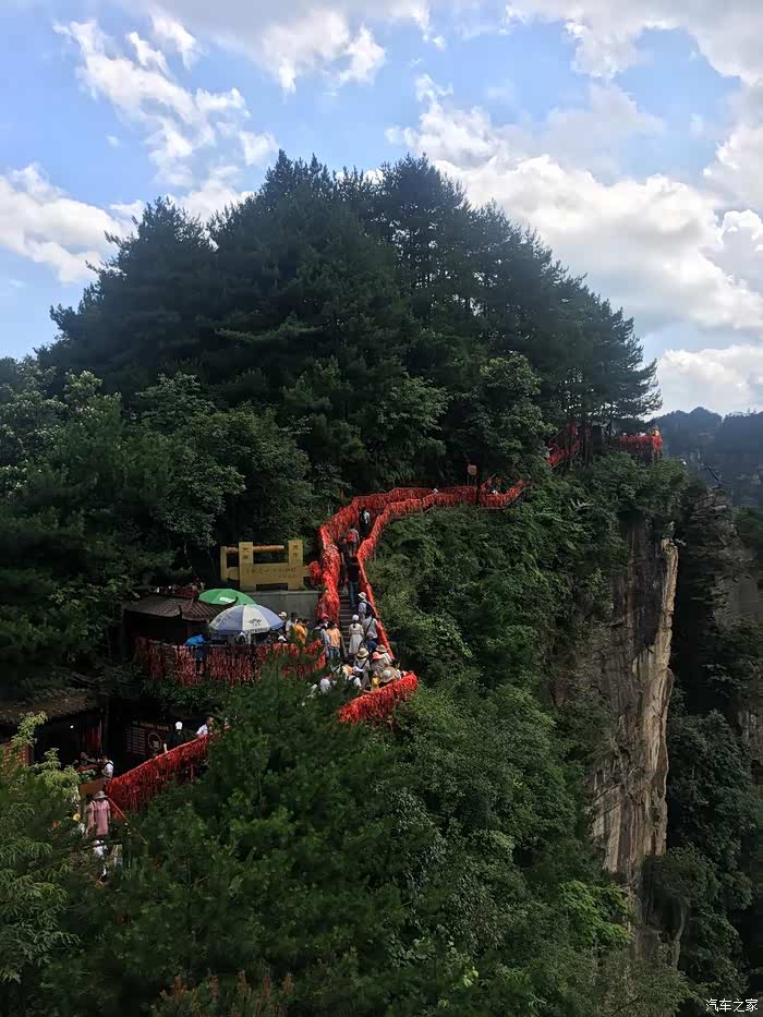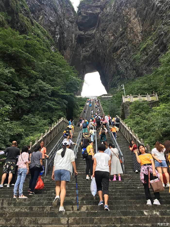 D8(2019年7月13日): 早上按约定时段8点左右到达天门山索道下站,排队乘坐景区中巴到达山门口,排队换乘中巴上山,亲身经历山中第一景:九十九道湾的盘山公路,感慨人类智慧!到达天门洞广场观云海、俯视公路奇观,美不胜收。接下来登999极天梯到达天门洞。然后经历第二景:穿山电梯。之后走东线,经过东线玻璃栈道(雨大雾大,能见度低),通过鬼谷栈道,来到鬼谷天堑,经过西线玻璃栈道,最后到达亚洲最长索道,排号段检票进入下行索道,此刻雨过天晴,在索道中观看四周云雾缭绕,乘索道翻阅重山峻岭,经过张家界火车站、汽车站,经过二十几分钟后到达索道公司。结束今天天门山的游览。山区天气多变,各种体验尽在其中!下索道已经15:30了,吃了碗波叔草帽面,离开之前再次体会景区消费,别了,二游张家界,不会再来了。三个人共同表决取消了去凤凰古城的行程(太多的商业化让我们对游览古城没有太多的欲望),16时刚过开车返程,夜宿宜昌滨江假日酒店(此行中到店最晚的一次,约等于21时)。