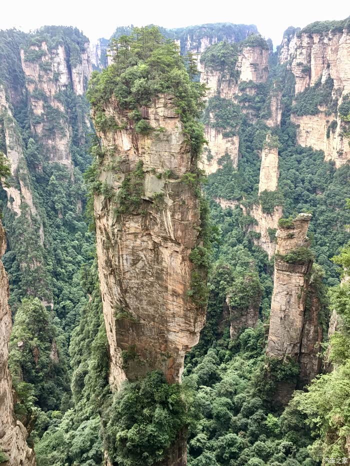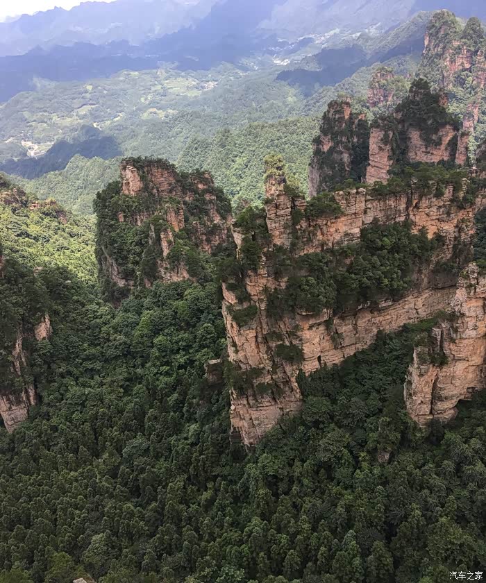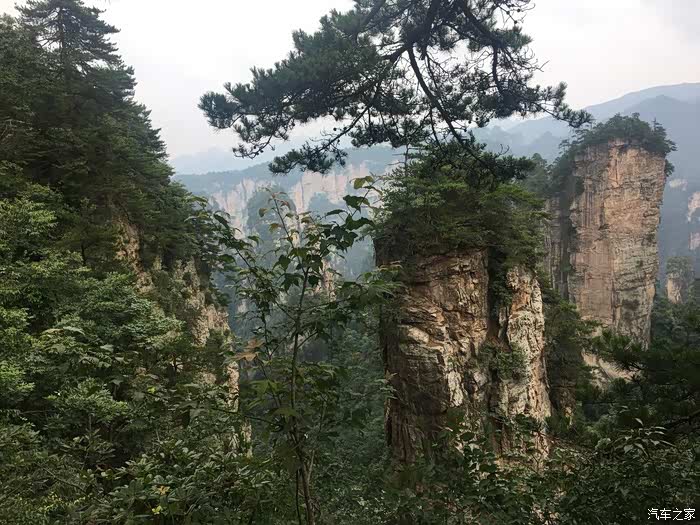 D6(2019年7月11日):今天稍晚起床,吃完早餐再到景区,今天主要走十里画廊_金鞭溪_黄石寨。个人认为客栈推荐这条线路不可取(走金鞭溪八公里没有必要),尤其是自驾游游客。完全可以选择坐景交车回武陵源标志门再驾车到森林公园门去黄石寨。由于去黄石寨选择了上下索道,今天虽然走了两万多步,但大都是在溪边平缓处,女儿说强度一般,连日在山区我是腿疼了。下午五点出了景区,结束森林公园的游玩,今天略显审美疲劳,正如导游所言:"张家界的山看起来远看大石头,近看石头大"。佩服讲了n遍的导游!我还是喜欢有创造性的工作。明天原订游览天门山,由于天气预报大雨,临时决定早上睡懒觉,下午游览黄龙洞,下午去张家界市区。