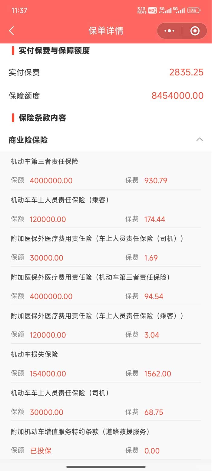 保险3785(商业险2835+交强险950)