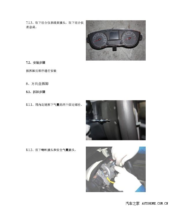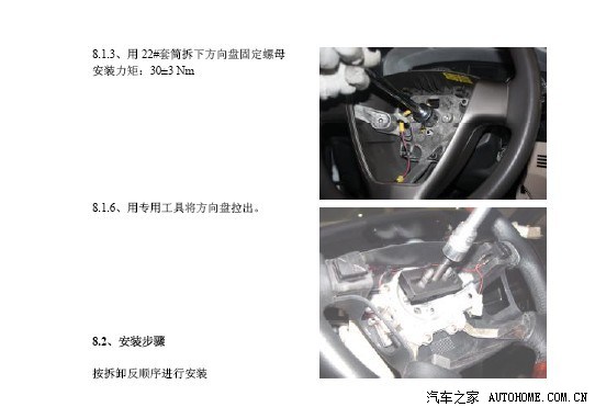 方向盘的拆装步骤请看资料,自此提醒一点,拆螺旋电缆之前一定要把汽车上的电瓶线卡子拆下来,就是完全断电的意思,切不可带电作业,因为插拔气囊接口的时候,万一虚接的话气囊就有可能会爆开!!!