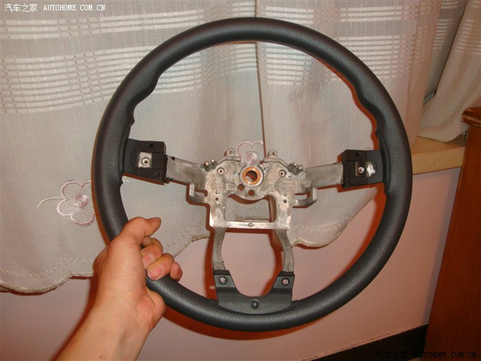 各位看到方向盘的有什么不一样了吗?不一样的地方就是包上了网眼透气的真皮方向盘套,而且包上的效果和原装豪华版的一样,没有一点路出皮子接头的地方,就像一个整体的一样