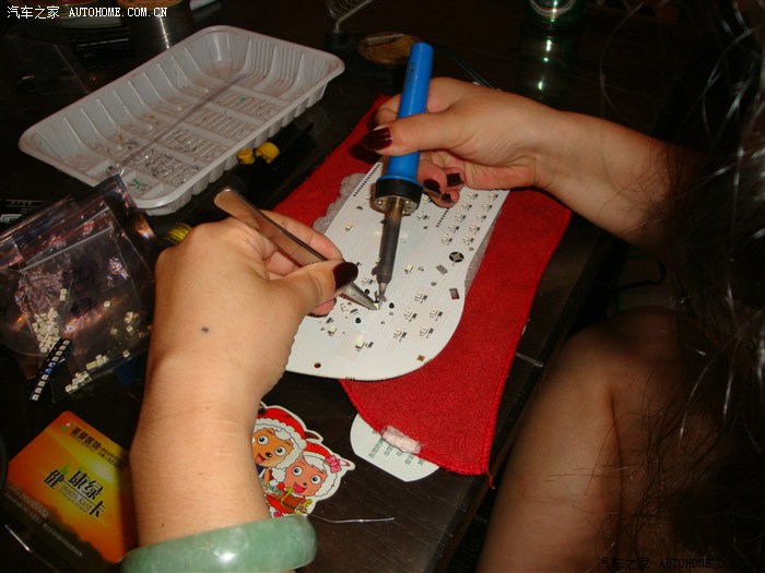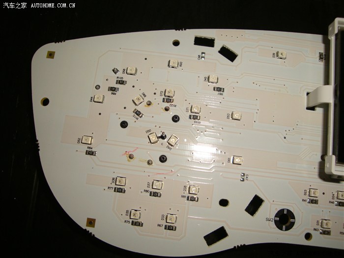 开始拆解LED,这里也要小心,稍有不慎就会把板子烫坏,尤其是把指针的LED拆下来的时候千万要控制好温度,不能超过5秒的极限值,因为下面是步进电机,外壳是塑料的,温度一高就会把步进电机烧坏,指针无法使用报废!!!