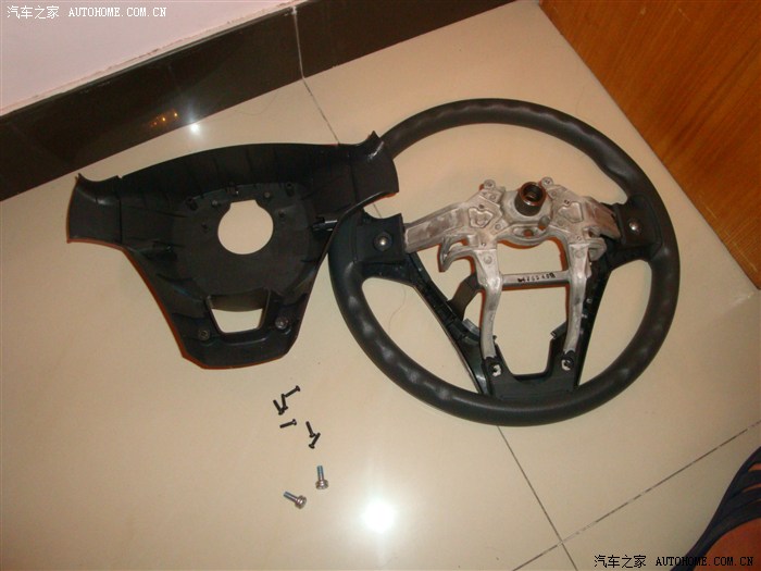 方向盘的那个喇叭盖是和气囊一体的,要把这个拆下来的话,那2颗螺丝在方向盘本体下面的左右两边各一个梅花的螺丝,用专门的螺丝刀拧下来就可以了,那螺丝拧松以后是不会掉出来的,有卡子卡着了