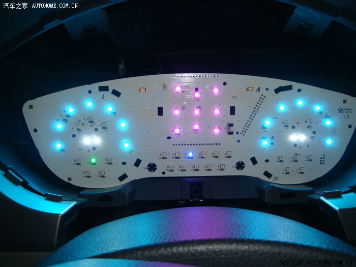 仪表冰蓝色,液晶翠绿色,指针翠绿色(效果不是很明显,中期改为白色的了,最终后期改成橙色的了,指针原装的是红色)