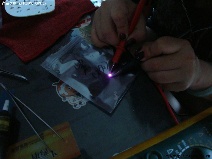 先上钥匙孔照明的,拆装方法请参照《G3自动大灯改装完毕!实现低照度自动开启大灯功能!》,我直接上内部的图,还是老规矩,图的下面问题文字是图片说明。