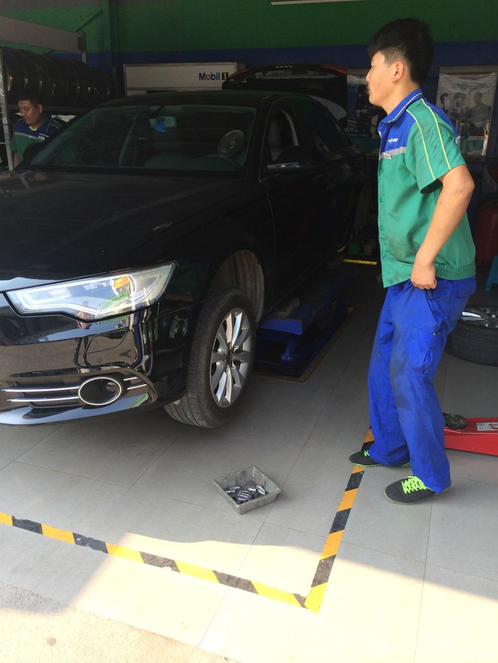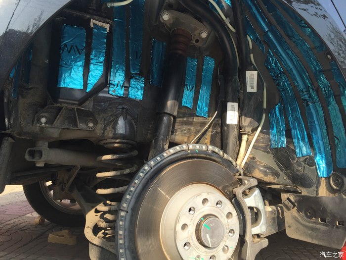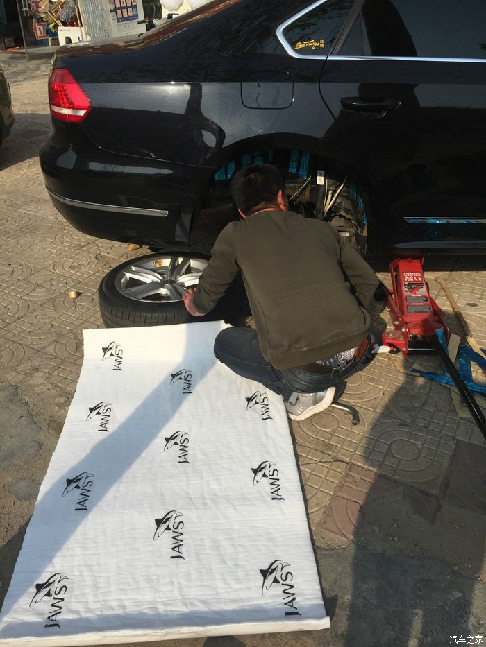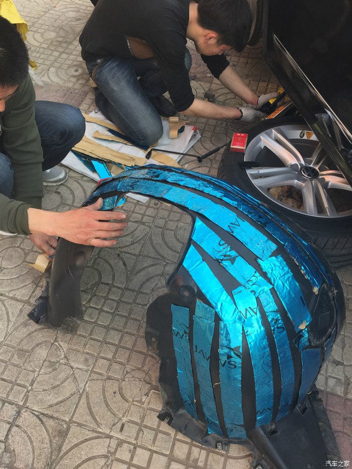 所以今天实在忍不住 直接去了家考察过一次的音响改装店,谈好价钱直接轮毂内衬隔音差不多4个小时搞定,巧的是店主的新房子和我在一个小区,前后楼给了个优惠价,上图
