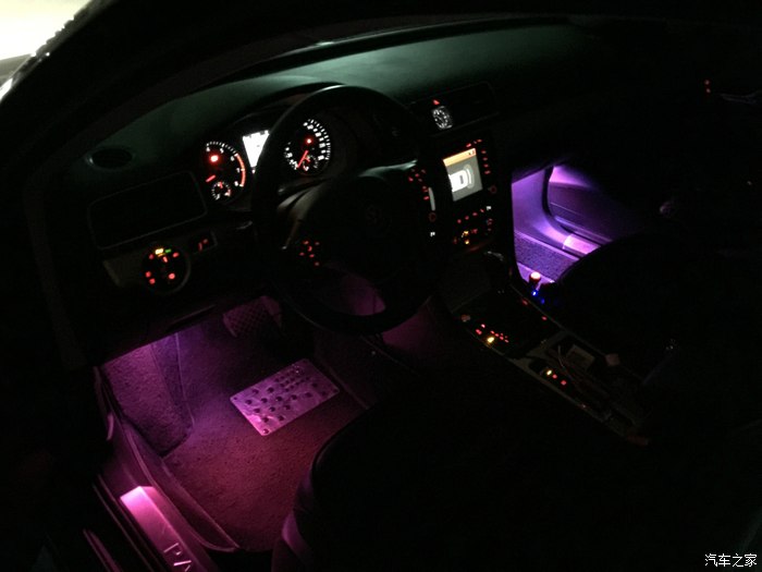连原车音响也一起升级就算了,隔音方面做好了就完美了,这车就是纯改着玩了 ,外观不喜欢太张扬所以还是普普通通,但是到了晚上就....来张小帕经典夜晚闪死猫的照片哈哈
