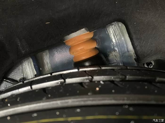 再看看下面,防尘套的上部辅助减震器就是镶嵌在避震顶座底部的。下图高能,敬请各位重点关注!!!