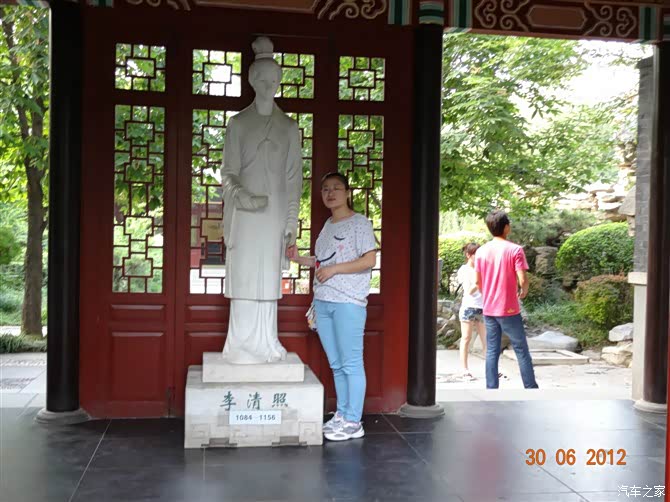 铛铛铛!本人出镜,我和女词人握握手吧!这是纪念馆进门有一座李清照的雕像!自古美女多婀娜,请忽略胖胖的我!