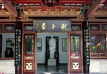 李清照纪念堂前院门楼是一座飞檐圆顶的四柱抱厦,双脊比翼,颜额挂有牌匾,上写"李清照纪念堂",为1959年郭沫若题写。门楼迎门屏风前后两面分别是郭沫若题写的"一代词人"和"传颂千秋"。