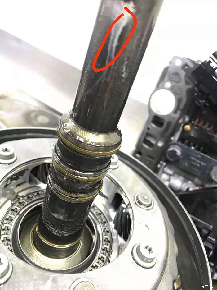 变速箱T字轴已经磨损很严重,这时车主才反应过来,叙说这辆车根本没有更换过变速箱油(顿时我也有点吃惊,伴随着惊讶)。