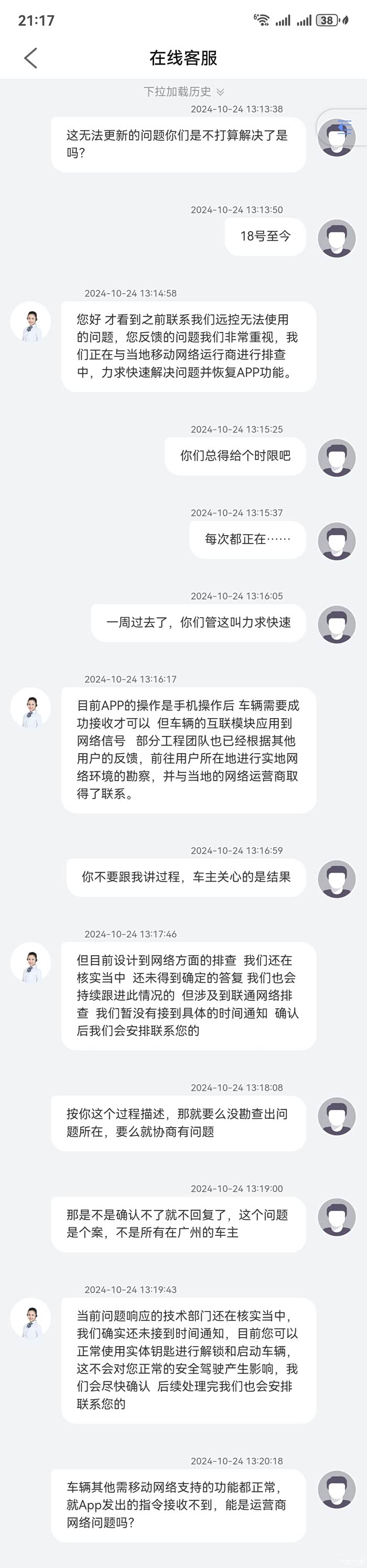 如图,10月18日开始福特派无法更新车辆信息,远程功能无法使用,问了福特派客服说是运营商问题,一周过去了,没个说法,销量不行不是没原因的。